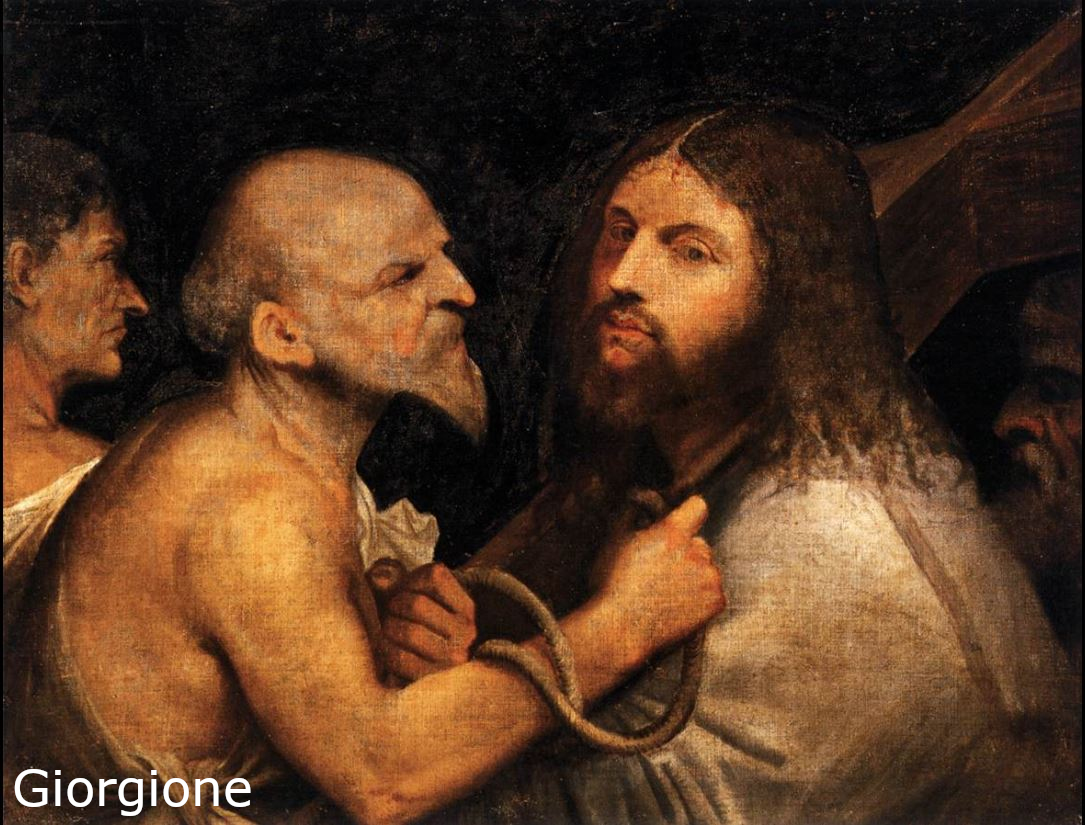 Les œuvres repérées par les historiens sont présentées par grandes aires. Côté vénitien : des compositions proches de l’entourage de Giovanni Bellini, ainsi que des œuvres associées à Giorgione ou au Titien. Le groupe milanais est le plus fourni, avec des peintres liés à l’héritage léonardesque : Giampietrino, Andrea Solario, Bernardino Luini et Cesare da Sesto. D’autres traditions complètent l’ensemble : Le Sodoma (formé dans le contexte lombard, puis rattaché à Sienne), et des versions plus atypiques comme le Christ tiré par les cheveux, reconnaissable à la main agrippant la chevelure. S’ajoutent enfin Marco d’Oggiono et Francesco Maineri, dont certaines compositions se rattachent plus indirectement au thème.