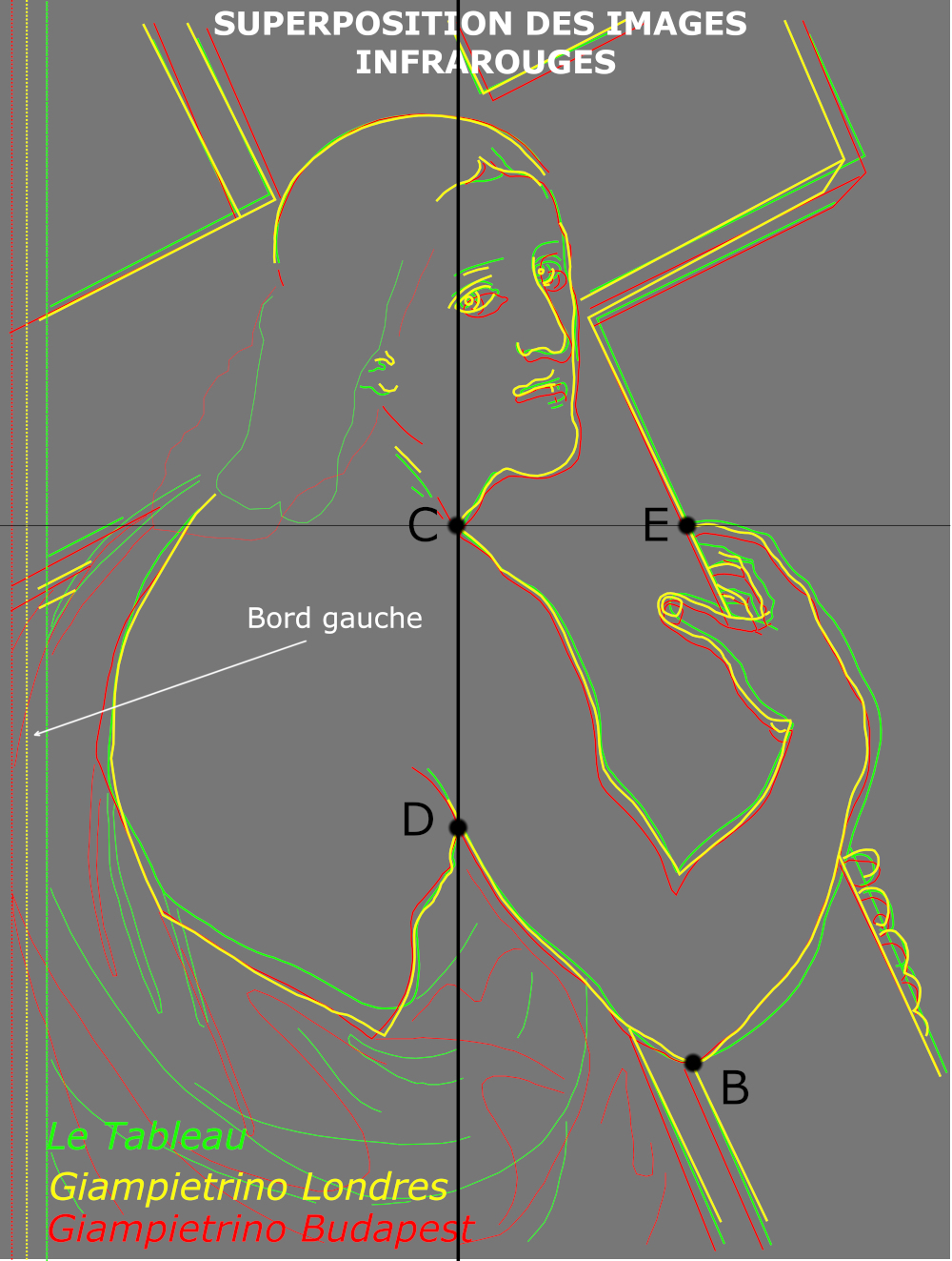 La superposition des images visibles du premier groupe (‘Le Tableau’, ‘Londres’, ‘Budapest’ et ‘Turin’) permet d’inclure dans la comparaison, la version de Turin et confirme les résultats précédents.