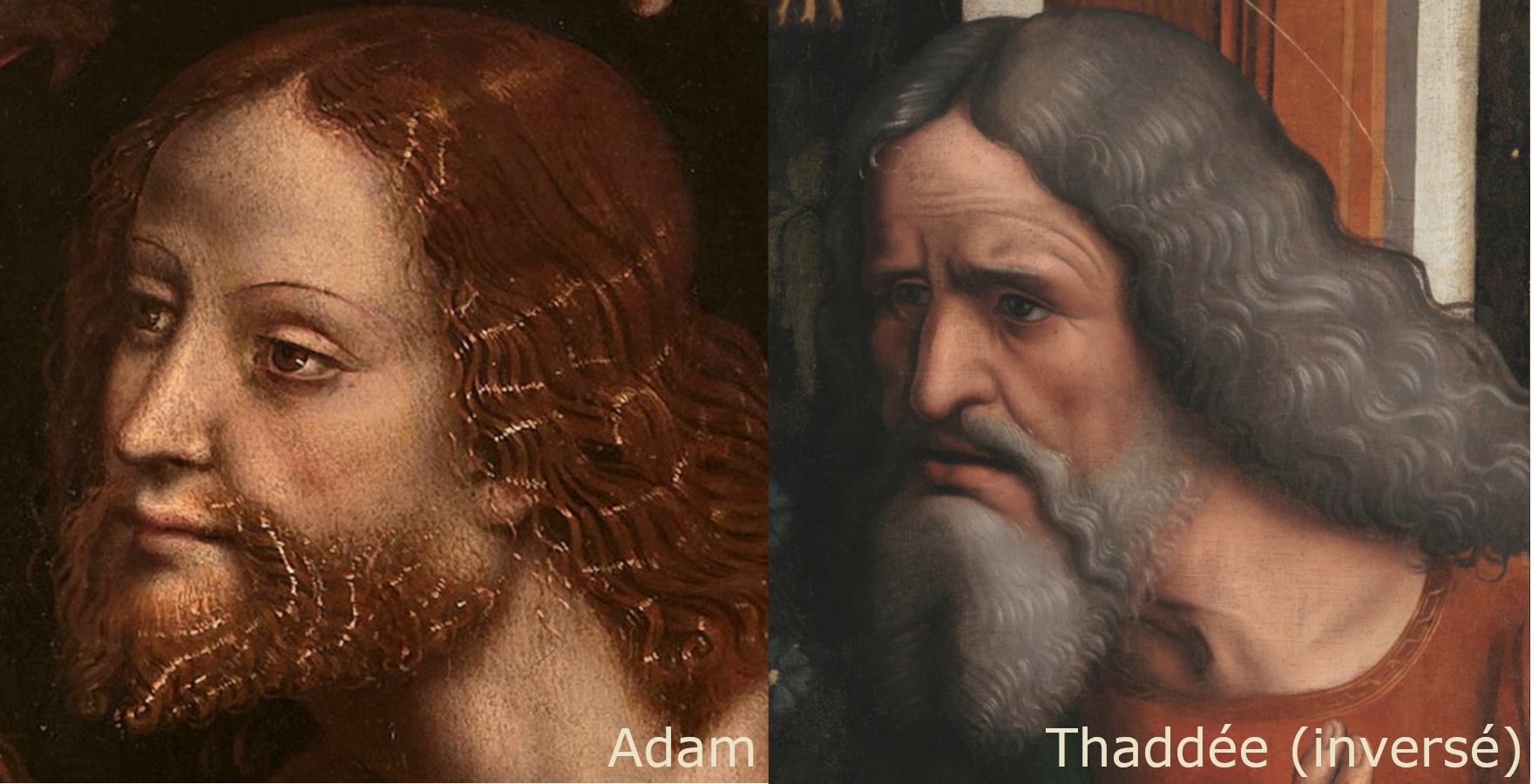 Ces expertises indépendantes apportent un éclairage précieux à l’analyse comparative. Elles confirment non seulement la circulation des modèles, mais surtout l’idée que le visage d’Adam reprend les traits de Thaddée dans La Cène, sur la base du Dessin de Venise.